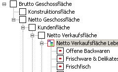 Another feature is the ability to evaluate furnishings according to their position within an area group, either by number of items or by running meters (e.g., for shelves in department stores).